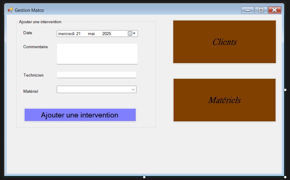 Développement d’une application de gestion de matériel technique pour suivre les clients, les équipements et les interventions.